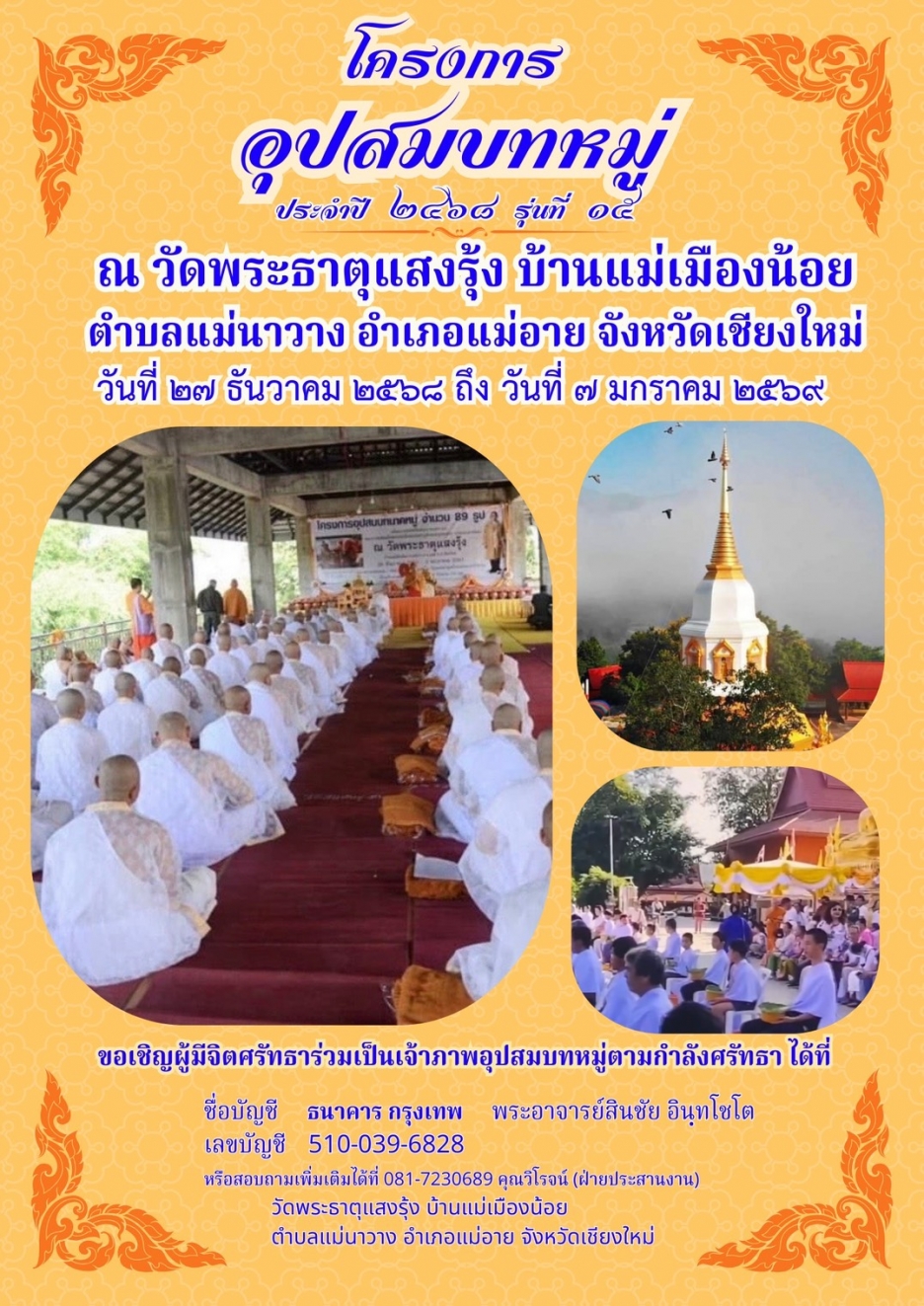 เพื่อสมทบทุนบูรณะองค์พระบรมธาตุเจดีย์อายุนับพันปี ณ วัดพระธาตุแสงรุ้ง เนื่องในวันอาสาฬหบูชา
